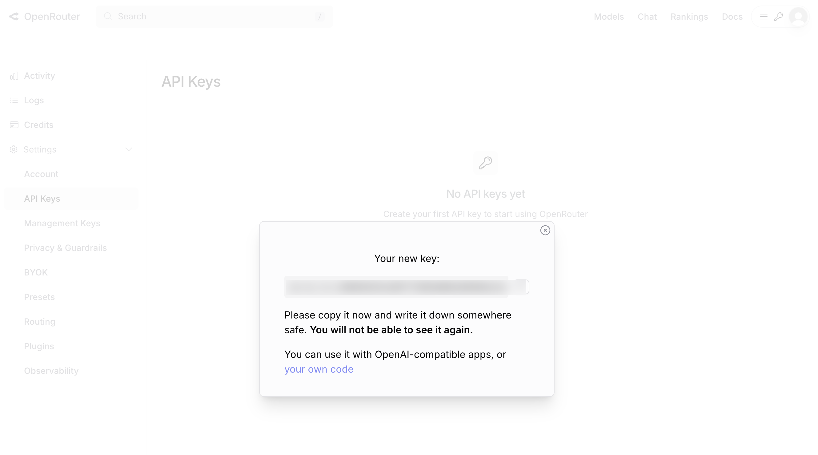 - Crée un compte sur openrouter.ai
